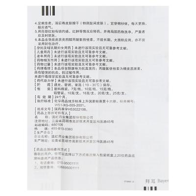 | 4.为减少感染复发,对念珠菌病、体癣、股癣和花斑癣,治疗至少需2~4周,脂溢性皮炎至少需4周或至临床治愈。 | |