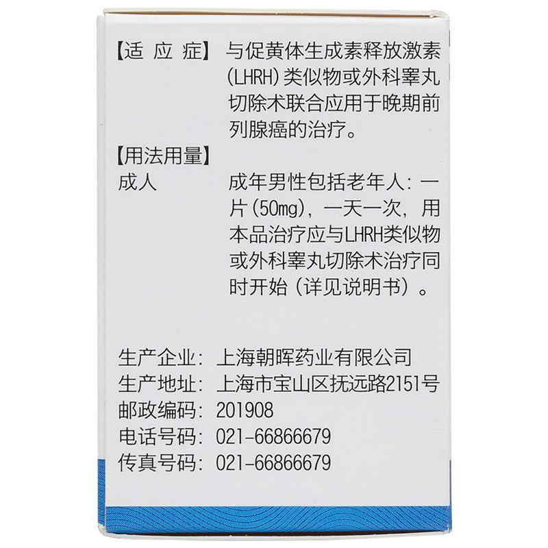 | 适应症: | 与促黄体生成素释放激素类似物或外科睾丸切除术联合应用于晚期前列腺癌的治疗 |