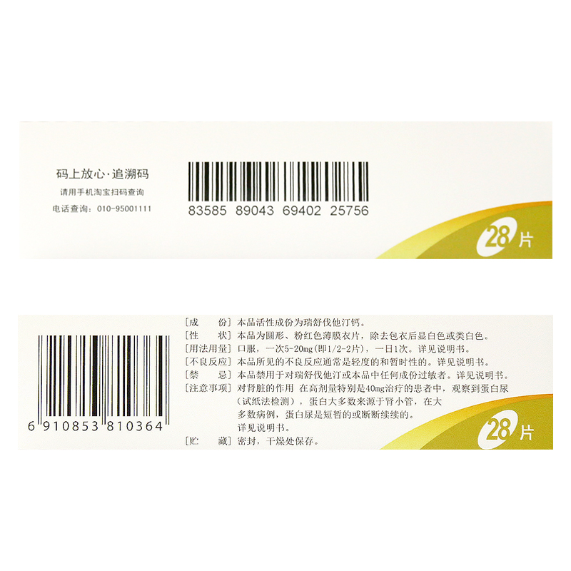 | 成份: | 本品主要成份为瑞舒伐他汀钙。 |